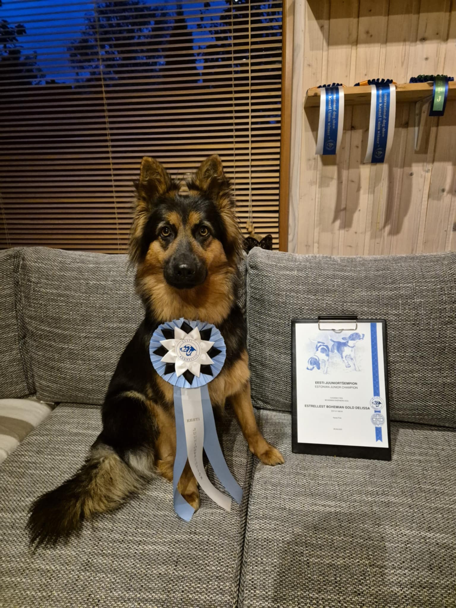 Estrellest Bohemian Gold Delissa. Kinnitatud tiitlid 2025: Eesti Kennelliidu Võitja 2025 (EKL W25)Eesti Kennelliidu Juuniorvõitja 2025 (EKL JW25)Eesti Juuniortšempion (EST JCH)
